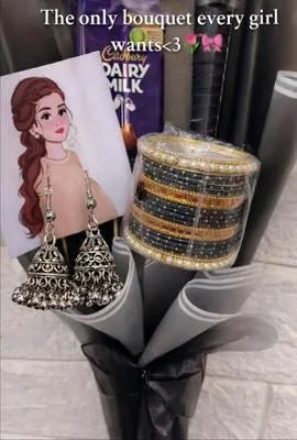 • Material: Metal• Plating: Gold Plated• Stone: Pearl• Gender Type: Women• Stone Color: Golden• Product Design: Indian Design• Product Feature: Unique Design• Number Of Pieces: 12 Pcs• Size: 2, 2.5, 2.25• Color: Black, Blue, Red, Green, White• Package Includes: 2 x Kara Bangle, 12 x Plain Bangle• Size Dimensions: 7 Inches• maching jhumki inclide and cone mehndi• Note: Keep jewelry dry, away from chemicals. Store separately in a soft pouch. There might be a slight color difference due to different light and monitor effects.